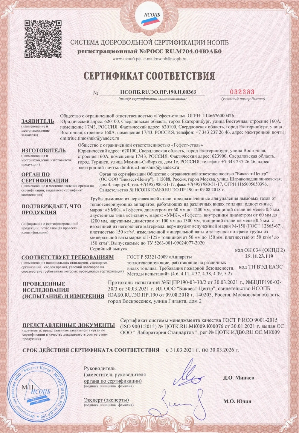 Дымоходы УМКПРО, ГЕФЕСТ-СТАЛЬ и баки для воды