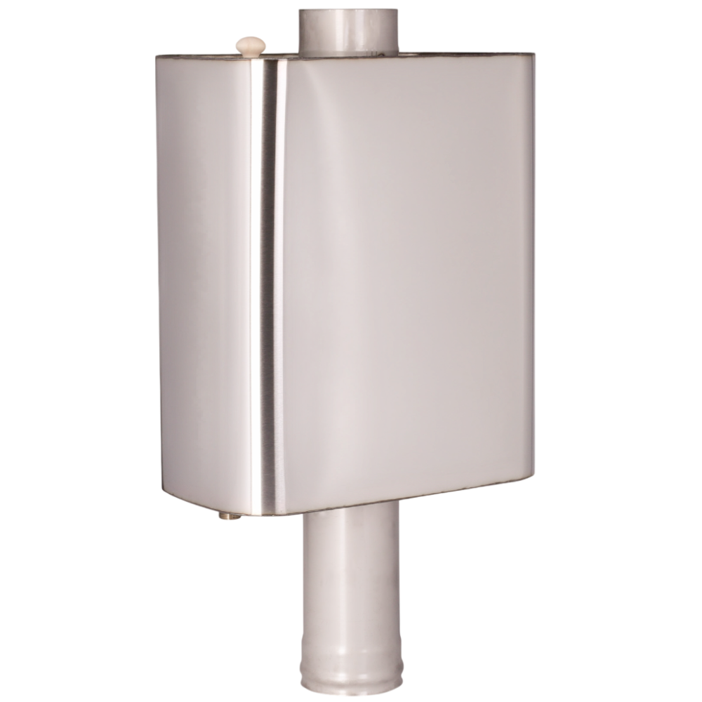 бак на трубе легко устанавливается на печь, заливается сверху водой а снизу расположен выходной патрубок