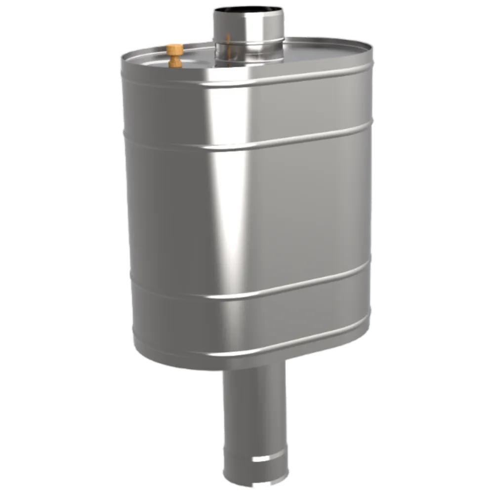 Позвонить в отдел монтажаБак на трубе предназначен для хрангения и нагрева воды за счет повышения температуры дымового канала. С увеличенной выстотой трубы для удобства укладки камней.