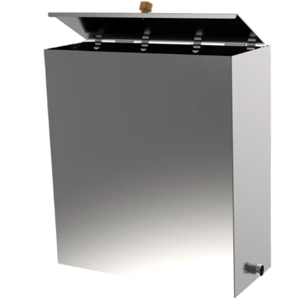 Бак предназначен для хранения и нагрева воды. На боковой части бака  расположен штуцер 3/4" для крепления крана. Расположение штуцера может быть на передней стенке, а так же слева или справа. Крышка откидная-съемная.
