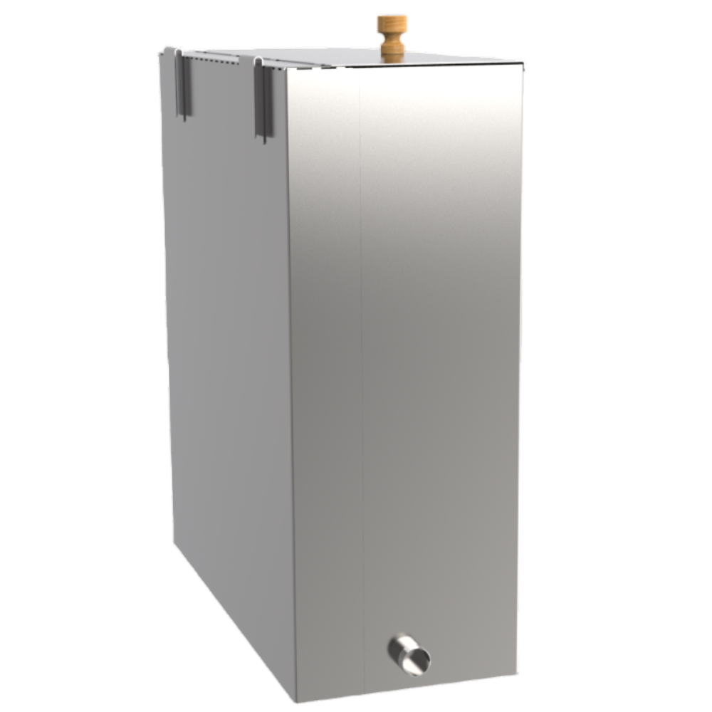 Позвонить в отдел монтажаБак предназначен для хранения и нагрева воды. Нагрев воды в баке происходит за счет нагрева стенки печи. Для фиксации на печи на задней стенке бака расположены два крепления. На боковой части бака расположен штуцер 3/4" для крепления крана. Расположение штуцера может быть на передней стенке, а так же слева или справа. Крышка откидная-съемная