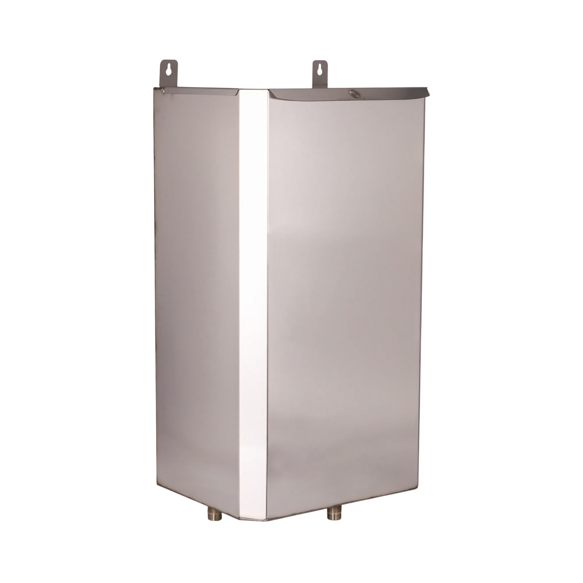 Позвонить в отдел монтажаБак предназначен для нагрева воды, путем естественной циркуляции, через теплообменник. Соединяется с теплообменником с помощью труб, что позволяет хранить воду в смежных помещениях. Для крепления труб снизу расположено 3 штуцера ¾. Сверху бака заливное отверстие с крышкой. Бак крепиться на стену с помощью креплений, расположенных в верхней части задней стенки бака.