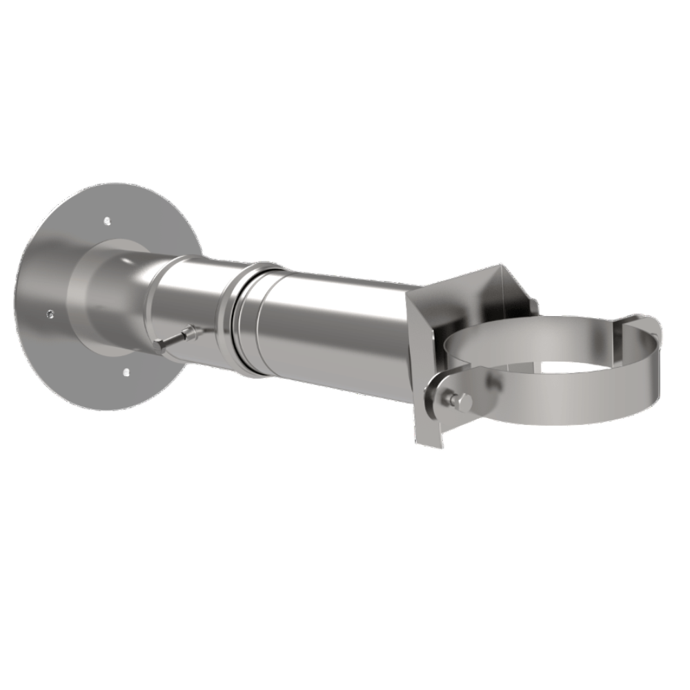 Кронштейн стеновой, телескопический позволяет в зависимости от необходимости изменять и регулировать расстояние от дымохода до стены. Имеет два типоразмера. Изготавливается различных диаметров из коррозионостойких марок сталей.