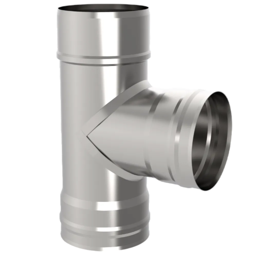 Тройник относится к основным элементам системы дымоудаления. В основном устанавливается в нижней части дымохода. Соединяет отопительный прибор или вспомогательные горизонтальные участки дымоотвода с главным дымовым каналом. Предотвращает попадание продуктов конденсации в отопительный котел. С помощью тройника можно проверять состояние дымохода и прочищать его. В нижней части рекомендуется установить конденсатосборник или заглушку. Производится из жаростойкой нержавеющей стали.