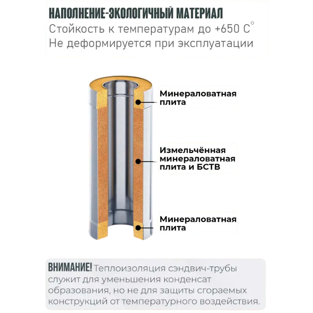(GS) Труба-термо 0,25м, 120х200, AISI 430/Оц, 0,5мм/0,5мм, (К), шт купить по выгодной цене