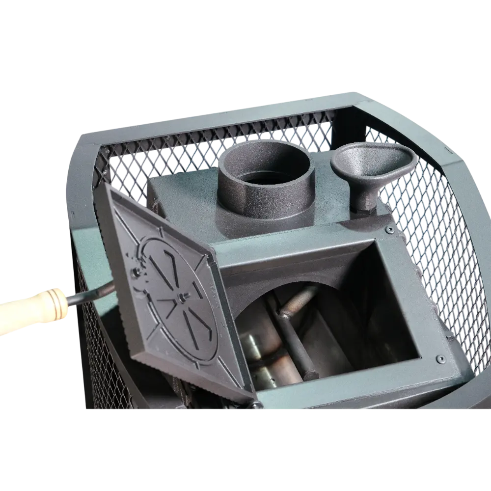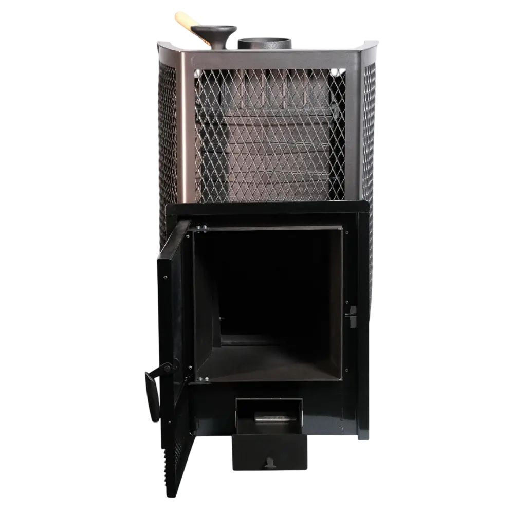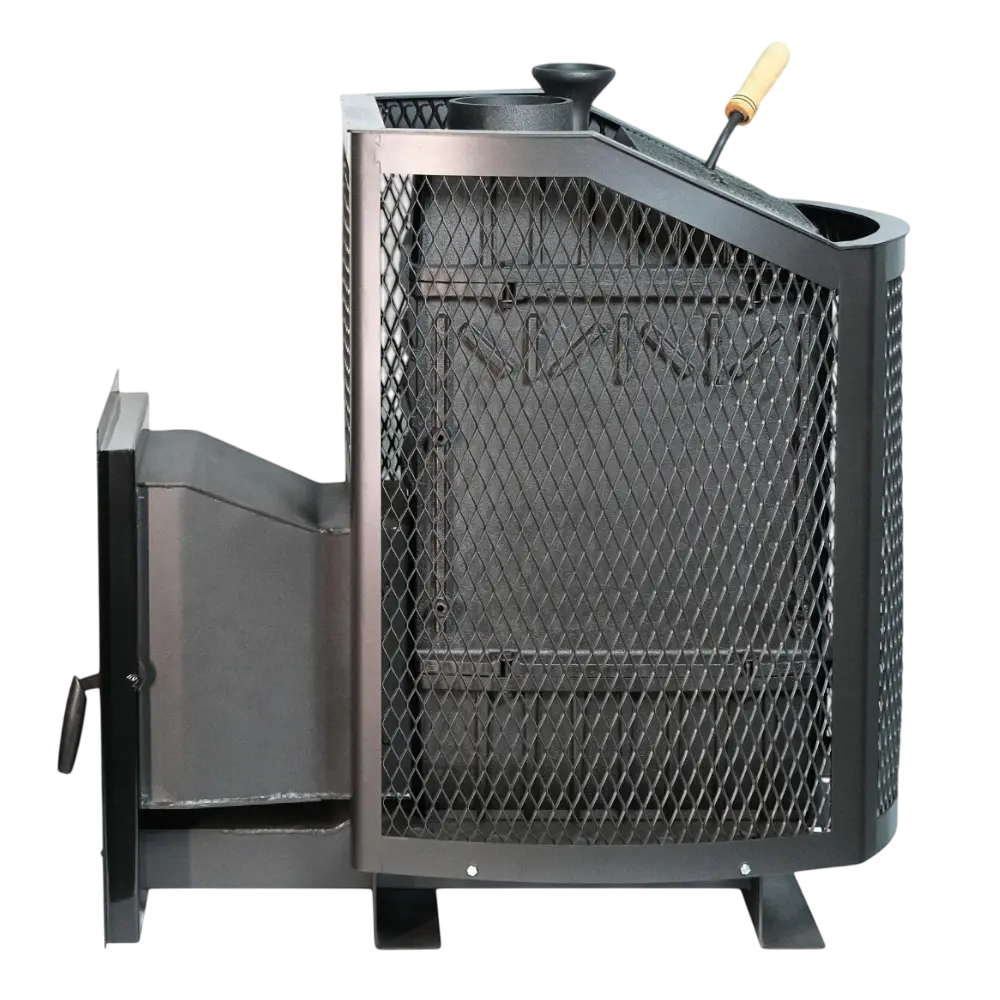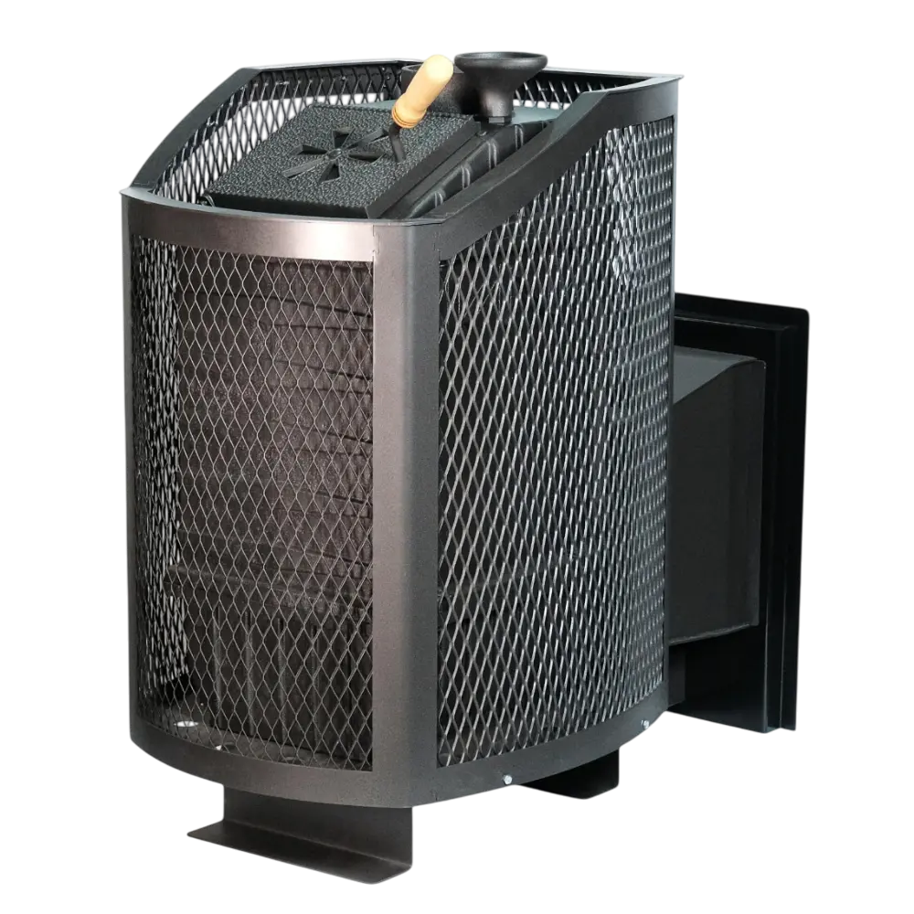 Позвонить в отдел монтажаЧугунная банная печь «Амур» - это уникальное решение для Вашей бани. Топочная камера выполнена из прочного и долговечного литого чугуна толщиной 8-10 мм. Чугун обладает хорошей стойкостью к длительному воздействию высоких температур, а за счет высокой теплоемкости хорошо принимает и отдает тепло. При этом закрытая каменка изготовлена из конструкционной нержавеющей стали толщиной 3 мм. Печь оснащена паровой пушкой для быстрой подачи воды непосредственно в закрытую каменку. Также можно лить воду на внешние камни открытой каменки. В совокупности эти опции помогут получить легкий пар, который создаст мягкую и комфортную атмосферу в парной. Наличие внутренней и внешней каменки дает возможность выбрать подходящий режим прогрева парной. Большое количество камней, способных разместится в печи создает неповторимую эстетику внутри бани и гармонизирует внутреннее пространство, а большая панорамная дверца с утонченной рамкой придает футуристичный дизайн. Печи рассчитаны на обогрев парильного и смежных помещений бани объемом от 12 до 24 м3. Возможна установка теплообменника на боковую стенку печи.