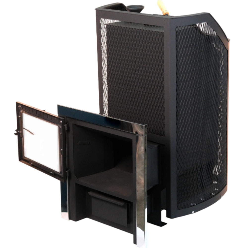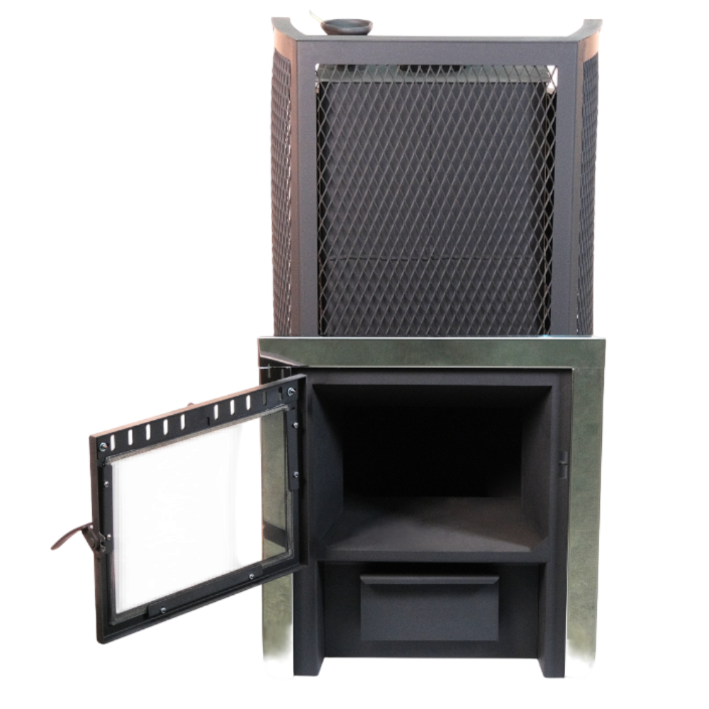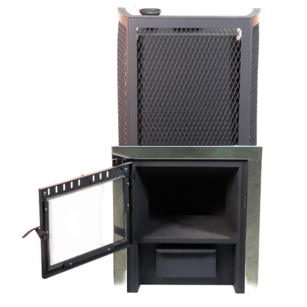 Позвонить в отдел монтажаБанная печь "Сибирь" с закрытой каменкой с панорамной топочной дверцей - это новый вид печей в линейке стальных банных печей "Сибирь". Печь представляет собой усовершенствованную модификацию традиционной стальной модели "Сибирь" в которой удалось реализовать идею создания закрытого пространства для камней. Традиционно, закрытая каменка служит для того, чтобы создать комфортную среду в парильном помещении русской бани. Такие печи принято считать правильными по причине их благоприятного оздоравливающего эффекта на организм человека.