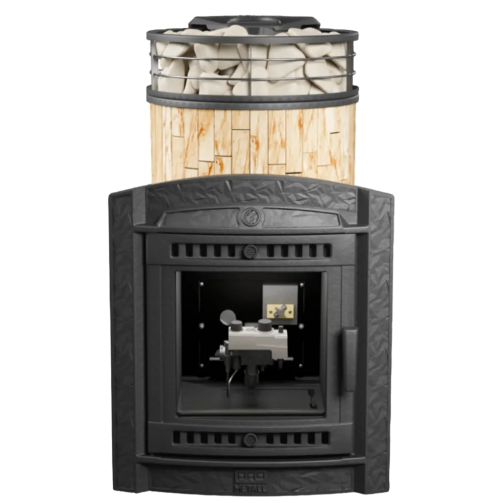 Позвонить в отдел монтажаПрактичная и компактная модель. Ламели из Окаменевшее дерево по периметру внешней каменки не только обладают хорошими теплонакопительными свойствами, но и придают печи оригинальный внешний вид.