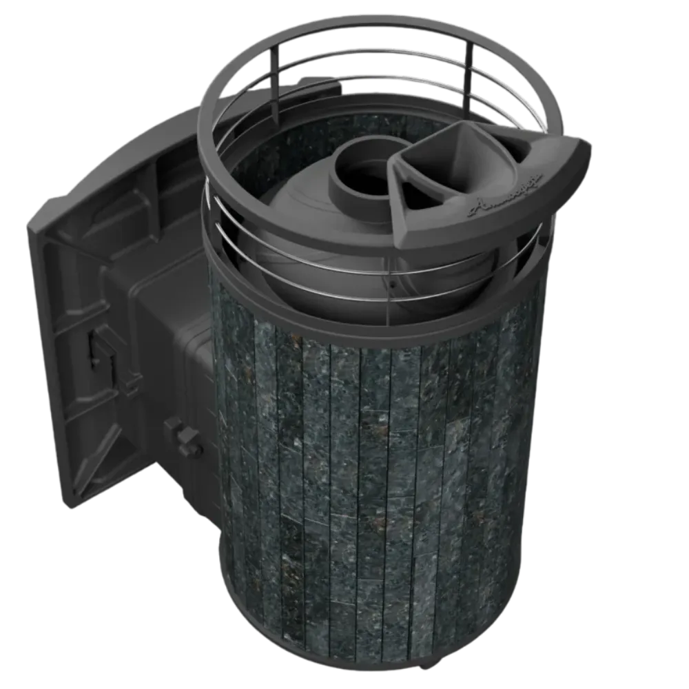 Позвонить в отдел монтажаПрактичная и компактная модель. Ламели из пироксенита по периметру внешней каменки не только обладают хорошими теплонакопительными свойствами, но и придают печи оригинальный внешний вид.