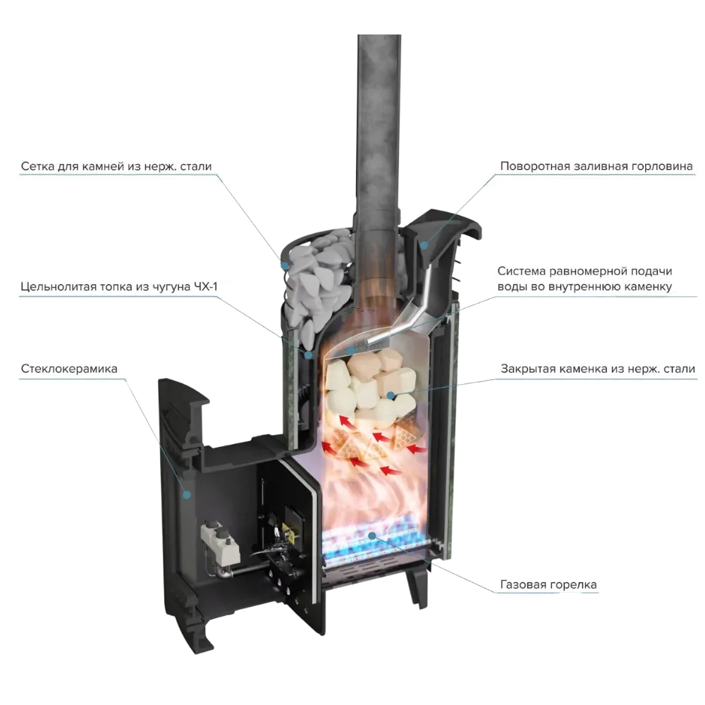 Специальная конструкция каменки из нержавеющей стали