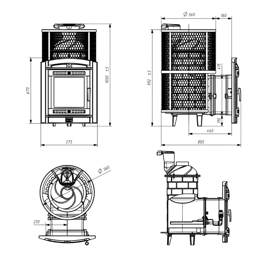 Цельнолитая конструкция топки, без швов гарантирует превосходную прочность.
