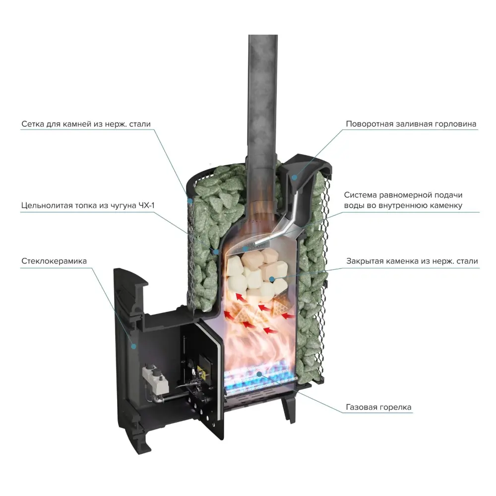 Специальная конструкция каменки из нержавеющей стали