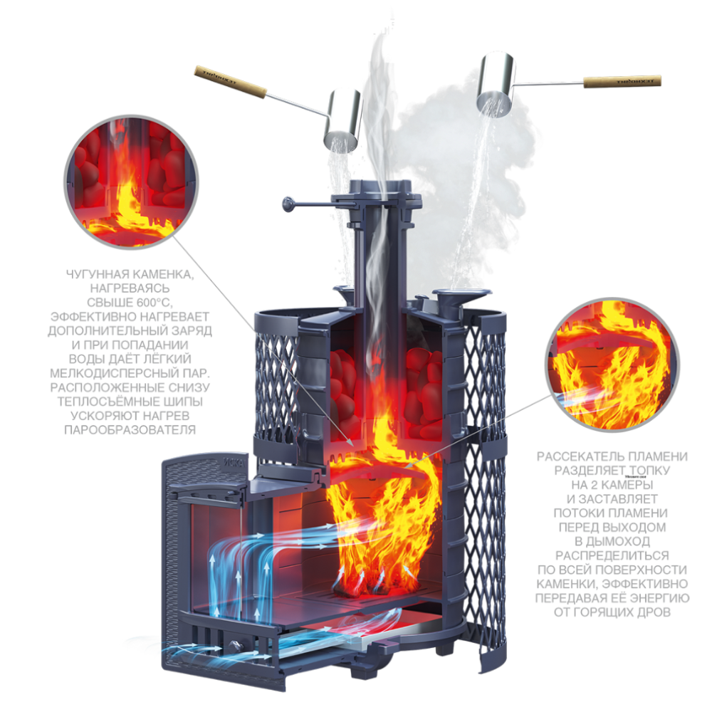 Позвонить в отдел монтажаЧугунная банная печь Искандер 25 Pro с прямым нагревом парообразователя. Печь со стенками толщиной 14 мм. Быстро нагревает воздух в парной и производит качественный мелкодисперсный пар за счёт теплоёмкой каменки, оснащённой теплосъёмными шипами на нижней поверхности.