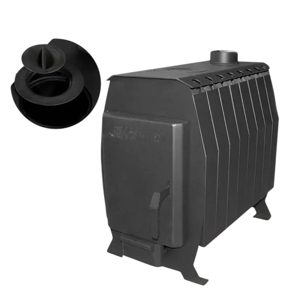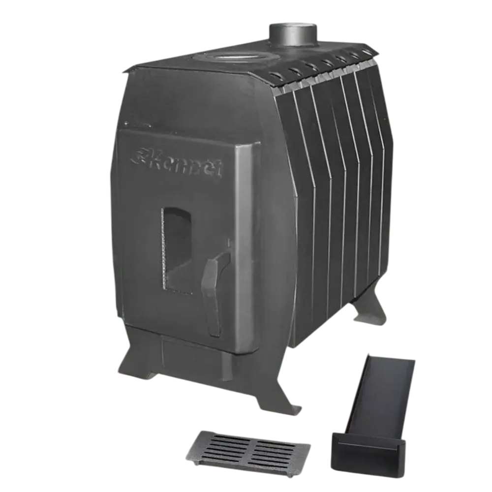 Позвонить в отдел монтажаПечь отопительная Кеннет Ария 200 предназначена для обогрева помещения объемом до 200 м3. Печь может использоваться для отапливания дачи, гаража, теплицы и позволяет подогревать пищу. Диаметр дымохода 115 Колличество щелевых конвекторов 8шт Вид топлива дрова (длина полена) 600мм Габариты ВШГ 745х430х710мм Особенности печи Кеннет Ария 200: • Печь изготовлена из котловой стали толщиной 3 мм •Дверца с жаростойким стеклом 90х190 Вертикально-ориентированная, что позволяет удобно заполнять топку дровами • Чугунная конфорка с двумя кольцами разных диаметров позволяет готовить пищу на открытом огне в посуде разного размера, загружать топливо сверху и прочищать от сажи верхнюю часть печи. • Печь окрашена черной термостойкой краской, температура применения до 1000С • Увеличенная площадь поверхности печи и конвекционные потоки быстро прогревают помещение • Интенсивность горения удобно регулируется изменением положения зольника • Отсутствие внутренних полостей, на которые может оседать сажа, упрощает эксплуатацию печи.