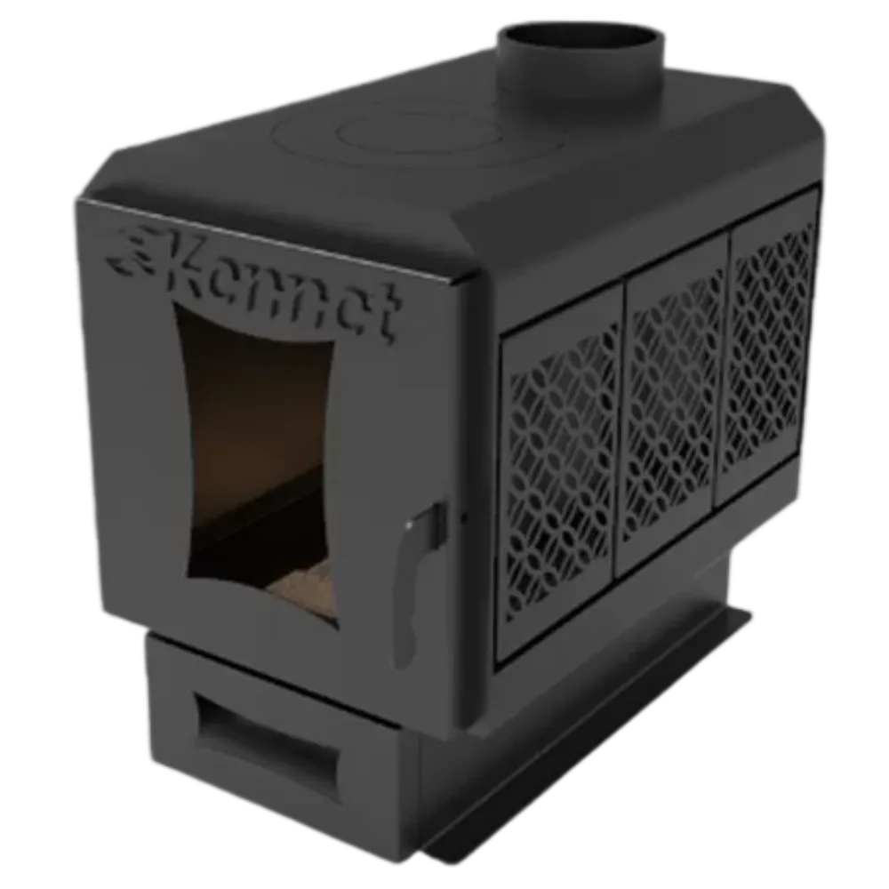 Позвонить в отдел монтажаДровяная печь отопительная Kennet Дюймовочка 50 предназначена для экономичного воздушного отопления жилых и нежилых помещений с временным пребыванием людей, а также для приготовления и разогрева пищи. Работа печи допускается в диапазоне изменения температуры окружающей среды от -60 до +40 °C, значение климатических факторов соответствует исполнению УХЛ категории размещения 3 по ГОСТ 15150-69.2. ОСОБЕННОСТИ КОНСТРУКЦИИ Стандартный 115 мм диаметр дымохода - упрощает монтаж. Компактные размеры печи позволяют размещать её в самых небольших помещениях. На верхней варочной поверхности со стальными кругами можно приготовить и разогреть пищу. Геометрия топки и боковые конвекторы обеспечивают экономичное отопление помещения. Дверка топки, вращаясь на шарнире, открывается на 180°, что делает загрузку топлива удобной и безопасной. Механизм запирания надежно фиксирует дверку простым поворотом ручки. В центре дверки имеется окошко из жаропрочного стекла ROBAX®, толщиной 4,0 мм., что позволяет визуально контролировать процесс горения. Под топкой расположен зольник с выдвижным ящиком для быстрого и аккуратного удаления золы, не прерывая процесса горения. Чугунный колосник в комплекте.