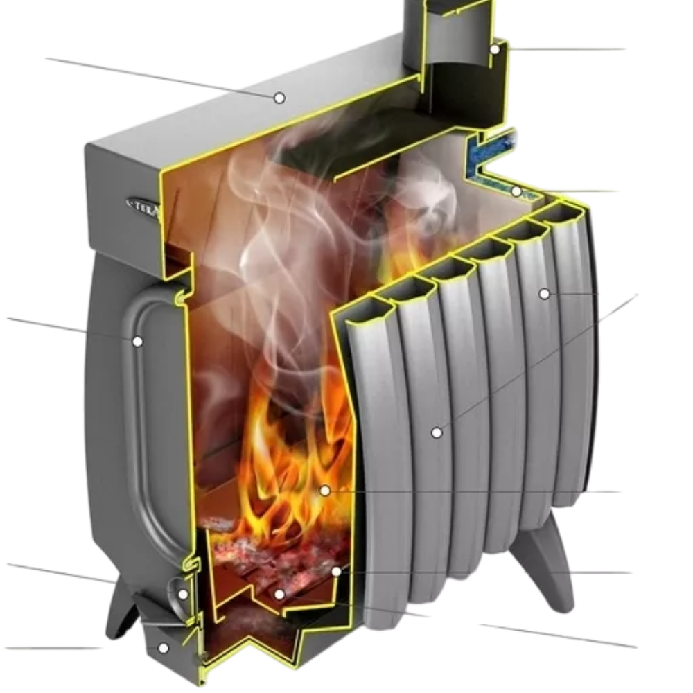 При максимальном сокращении количества декоративных элементов и некоторых конструктивных упрощениях печь сохраняет все теплотехнические характеристики популярной печи нового поколения «Огонь-батарея». Основная ее функция — отопительная.