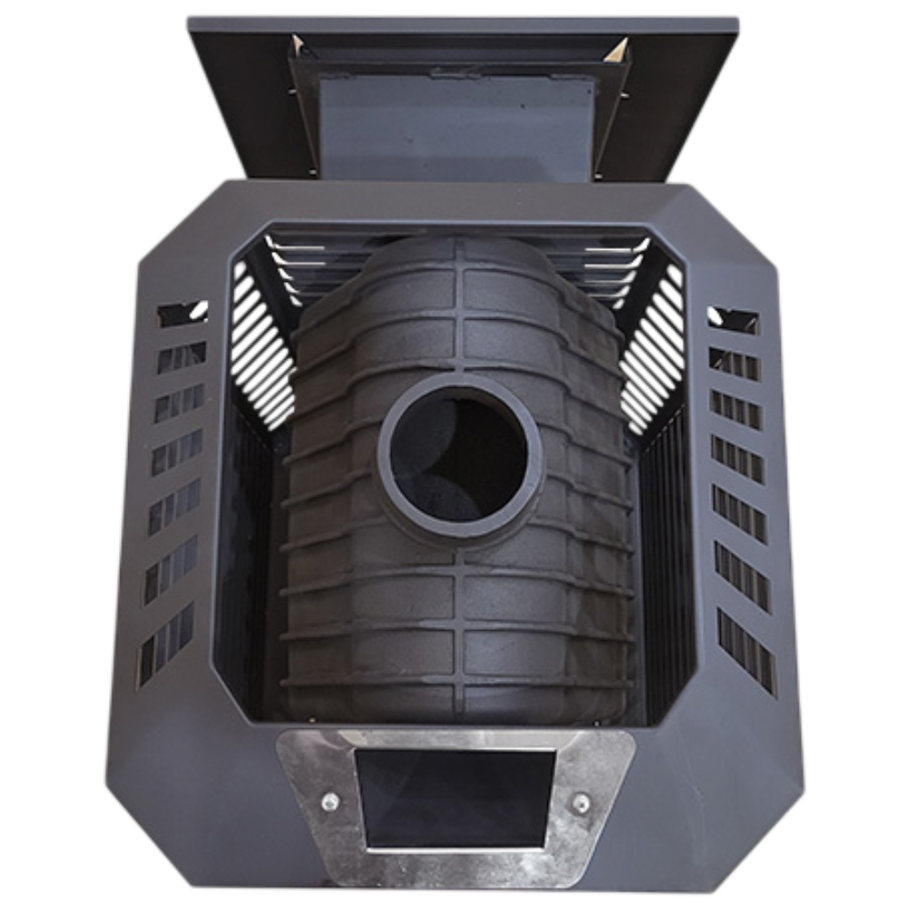 Позвонить в отдел монтажаПечь Пегас Некст -закрытая каменка из жаростойкой нержавеющей стали цилиндрической формы. Топка представляет собой цельнолитую конструкцию из чугуна марки СЧ20. Толщина стенок составляет 12 мм, в местах повышенной термонагруженности достигает 15 мм. Прочность конструкции обеспечивает сферическая форма и оребрение боковых поверхностей топки.Загрузка каменей в закрытую каменку от 10 до 15 кг в зависимости от фракции. Подача воды осуществляется через заливную горловину, которая попадает на камни через распределительный канал. Печи выпускаются с дверьми ДТ4 со стеклом и без. Керамическое жаростойкое стекло устанавливается на термостойкий шнур с прижимной рамкой. Чугунная дверца оборудована системой чистое стекло. Печь комплектуется чугунной колосниковой решеткой и зольным ящиком, который регулирует.