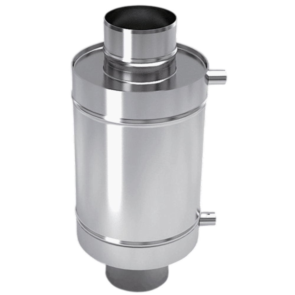 Позвонить в отдел монтажаПечь оснащенная теплообменником, позволяет разместить выносной бак с горячей водой в помещениях, смежной с парилкой. Для этой цели на дымоход, печи устангавливается универсальный теплообменник из нержавеющей стали с двумя штуцерами 3/4 дюйма, который с помощью труб соединяется с выносным баком. Материал трубы баков - сталь AISI 439 толщиной 1,0 мм с добавлением титана